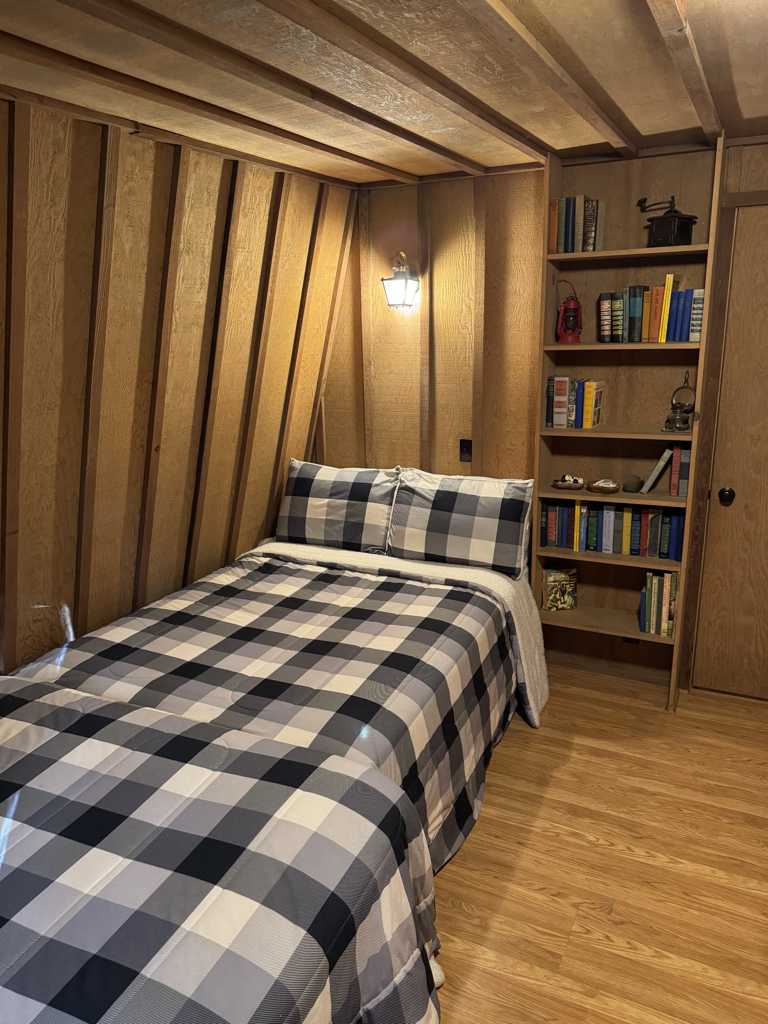 Upon entering the cabin you will find matching staircases to the left and right. Each leading you to a private room and full bathroom. The upstairs are direct mirrored layouts of each other. Guests are responsible for all bed linens, towels, and toiletries.